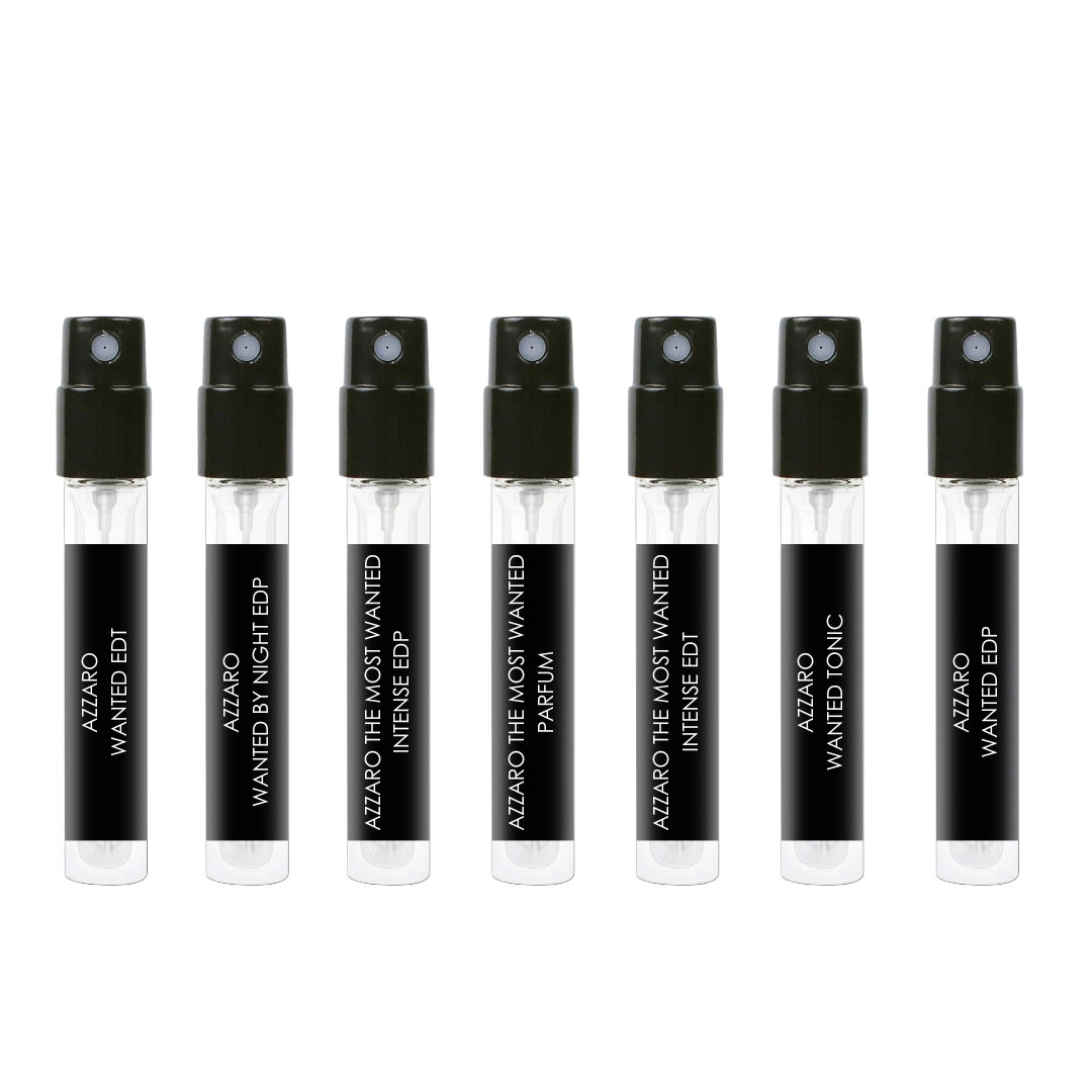 Set Description: Experience the luxury of Azzaro fragrance with the Azzaro Wanted Discovery Set. This exclusive set offers a tantalizing glimpse into the world of Azzaro Wanted fragrances, featuring a curated selection of 7 of their most iconic scents in our luxury glass samples.
